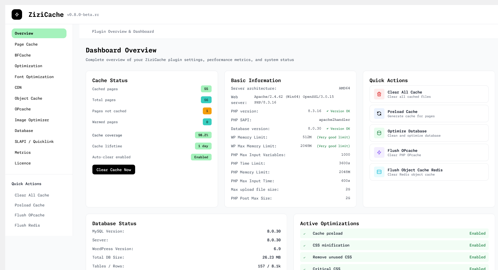 No need for multiple plugins—ZiziCache handles all your optimization needs in one place.